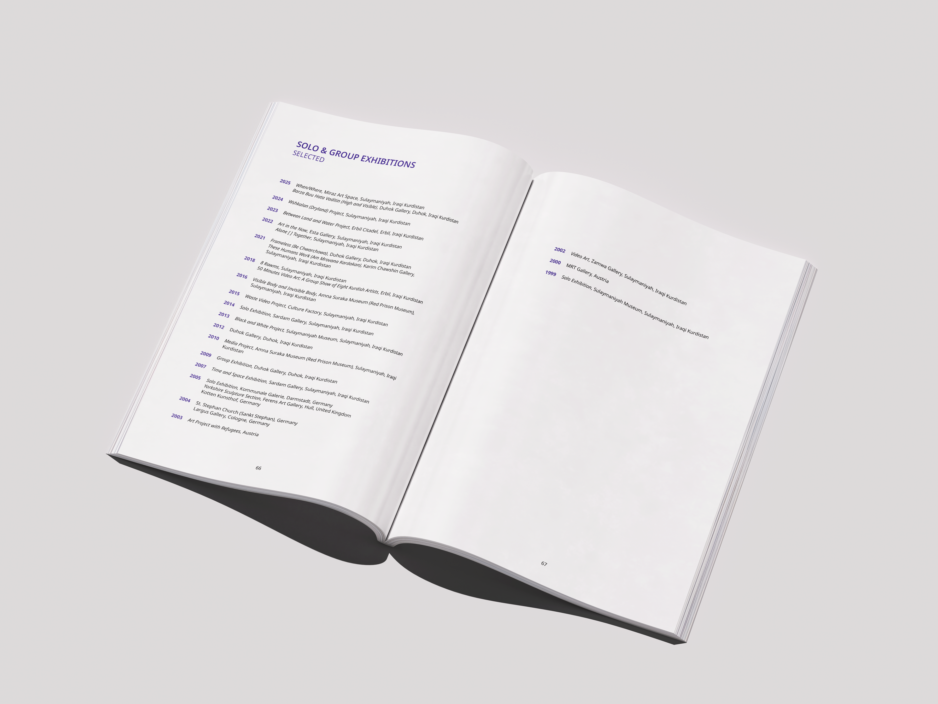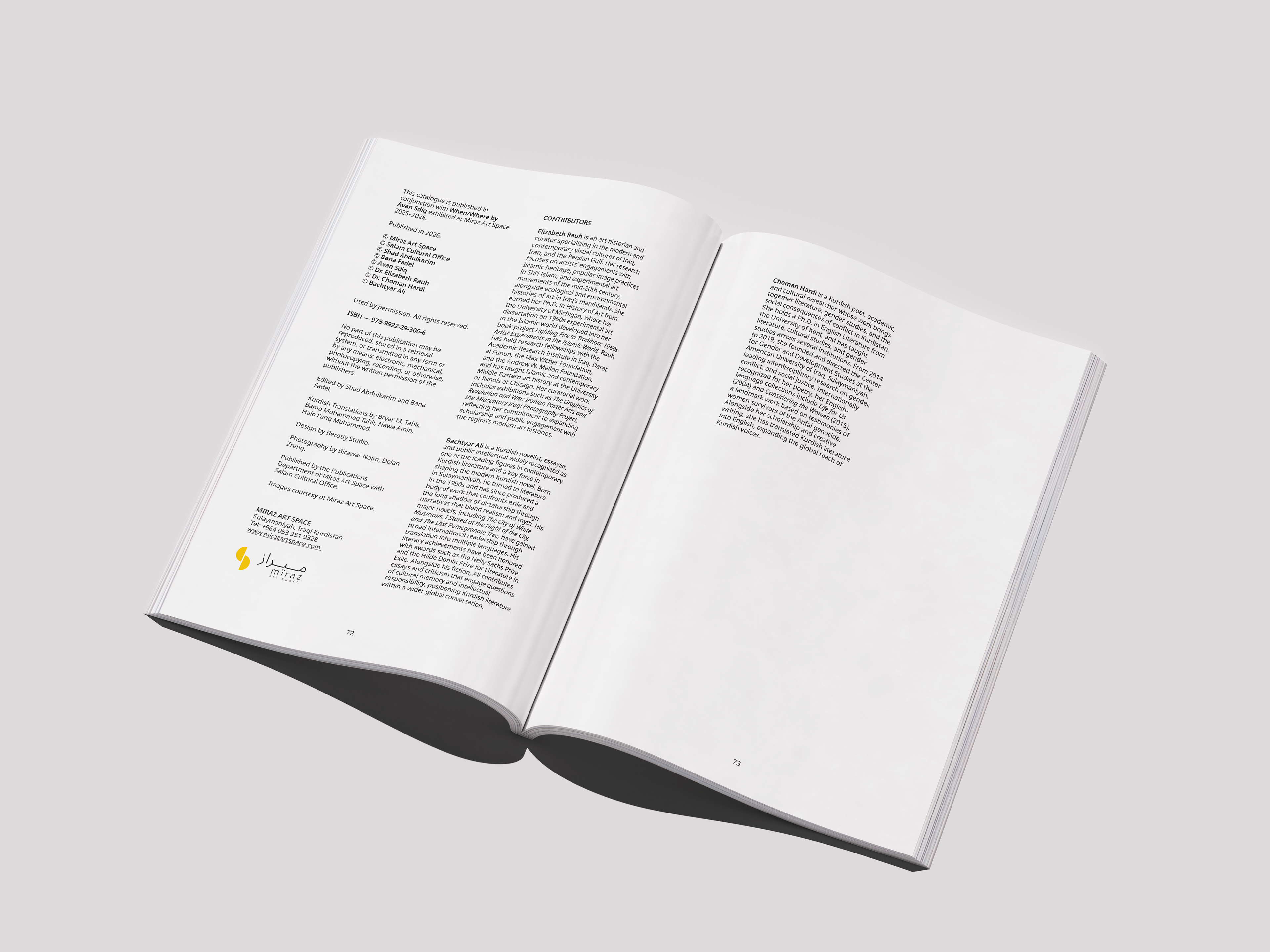 A catalogue designed for the When/Where exhibition at Miraz Art Space, developed for both digital and print formats.