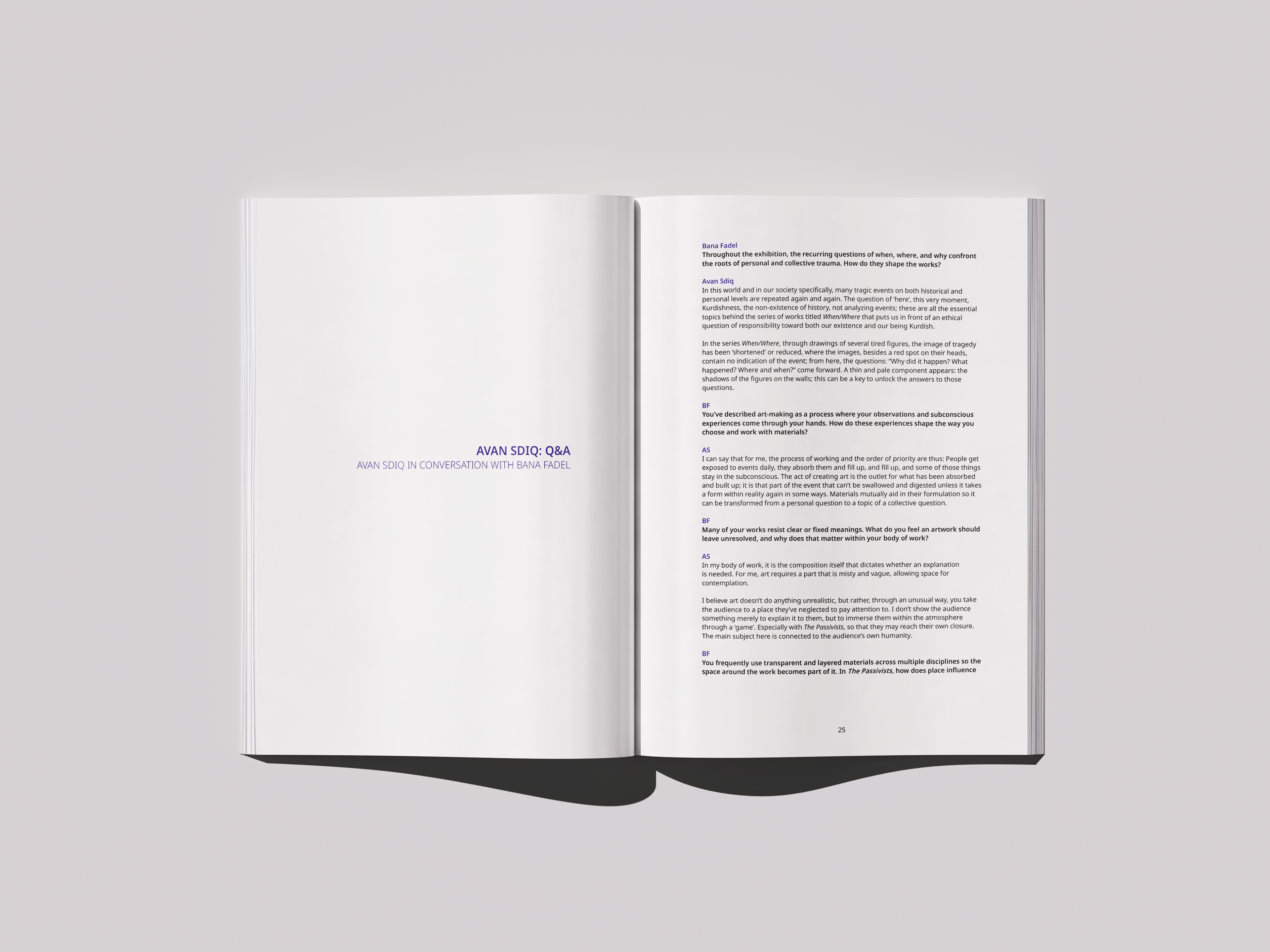 The publication brings together essays, exhibition materials, and an artist conversation within a clear and structured editorial system.